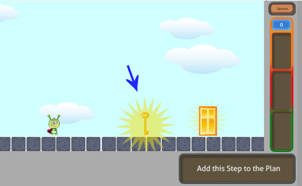 - Mention the object is to get a key to open a door and that they need to click on the key and then the door to add that step to their PLAN.