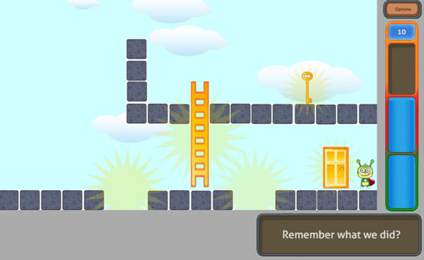 For young children and children with special needs, you may choose to go directly to Real World Applications when finishing this game. The INTRO and Find the Key and Unlock the Door games stress that planning before acting and reflecting on actions is important, but applying these skills can sometimes best be done with real objects rather than abstract computer play.