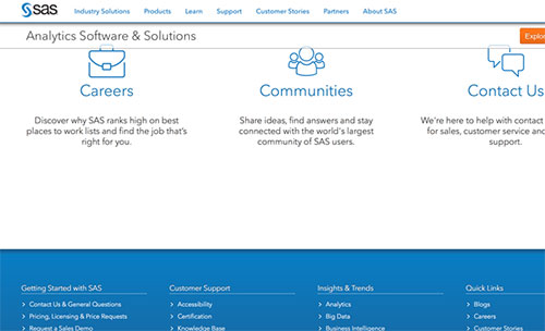 Currently many company web sites list their job links “employment”, “careers”, etc. at the very bottom section of their opening web site. If you don’t see a jobs link try typing “employment” into their search bar and hit enter. Check out these pages from different companies to see where the job sections are located: