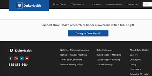 Scroll down to the bottom of the page, go to “About Duke Health” and select “Careers” below it.