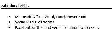 - This section is optional but can highlight more skills that can add value to your resume and application. Please only list work related skills and any technical or computer skills you might have. Also, include any extracurricular work-related certificates you received in the past 2-3 years. Here are a few examples for this section: