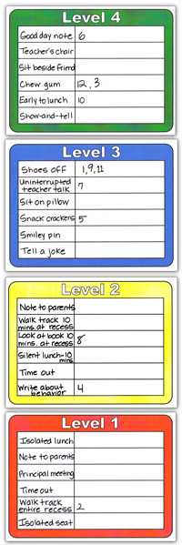 - Choose level 1, 2, 3 and 4 rewards/consequences and write them on the left side of the posters using a black overhead marker.