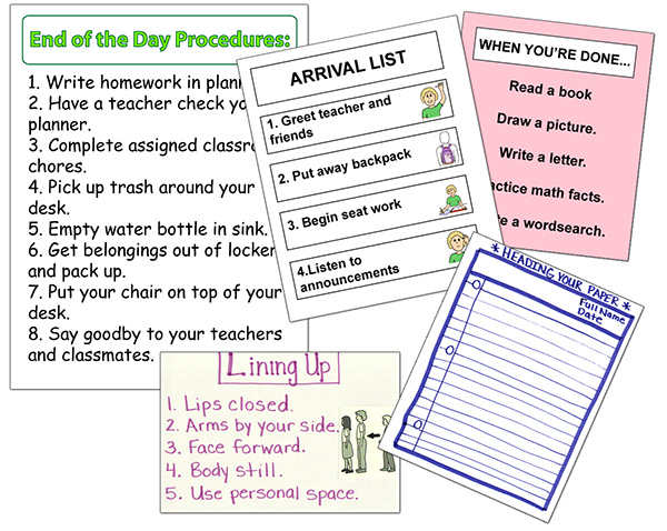 In order to successfully manage a room full of students, you must establish clearly defned procedures. As the person in charge, it is your responsibility to put procedures in place to ensure a smooth operation and a safe environment for learning. When the students enter the room on the first day of school, assume that they know nothing—how to walk, how to talk, how to raise their hand, how to sharpen a pencil. Any activity that does not lend itself to creative expression requires procedures. When introducing a new procedure, state the expectations of your students and show them how meet the expectations, practice the procedure frequently, then reinforce it through praise. Finally, they will become routines.