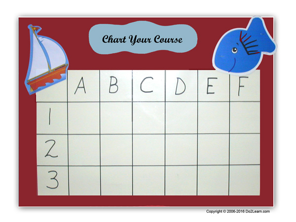 The Grid is easy to use and the possibilities are numerous! Using large graph chart paper, write letters on the top of the Grid (A-H, for instance), and numbers along the left side (1-8, for instance)*. When a student demonstrates the desired behavior, allow the student to write his or her initials in one of the squares. When the grid is full, choose a student to blindly draw coordinates; e.g. "D-5." The student with initials in that square receives a prize. The children quickly learn the expectations of their behavior, as well as the lesson of probability!