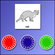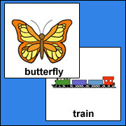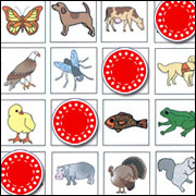 Game board laid out on a 5x5 grid containing Picture cards of simple images. |