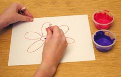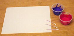 Draw the outline of what you want to paint. Use the cotton swabs to paint mosaic like dots to make a picture.