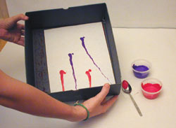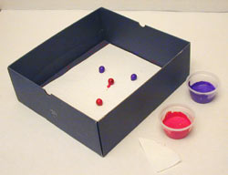 Put a piece of paper in the bottom of the box. Dip a few marbles/