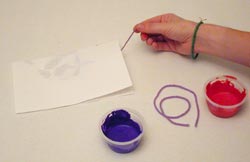 Several 18 inch pieces of yarn or light weight rope Tempera paint Paper