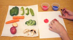 of the vegetable or dip the vegetables in the paint. Use the vegetables