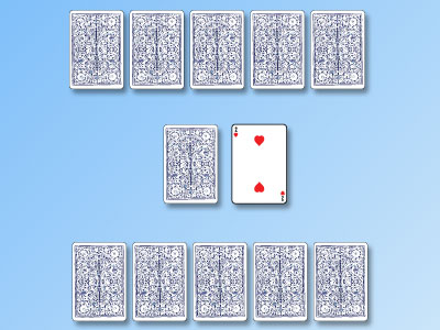 - The players lay out their 5 cards face down in front of them. The players do not look at the five cards in front of them.