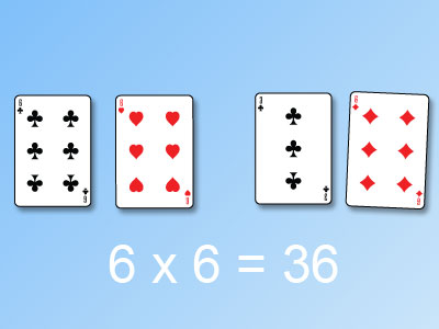 - During their turn, players lay out card sets of 3 or more that show a multiplication fact. For example, if playing the 6 times table, and a player has a three 6 sixes and one 3 in their hand, the player can lay out the cards to show 6X6=36.