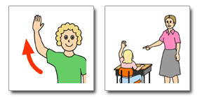 a child a visual card for raising a hand as a reminder if they