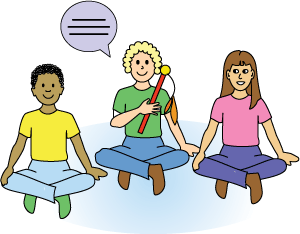Encourage the children to listen to others during discussion. Use a talking stick, or another object and pass it around when talking about a topic. Establish the rule that a person can only speak when they have the talking stick in their hands. This helps to practice listening, waiting turns, and thinking about a topic before speaking; also it can help cue children to plan instead of quickly reacting.