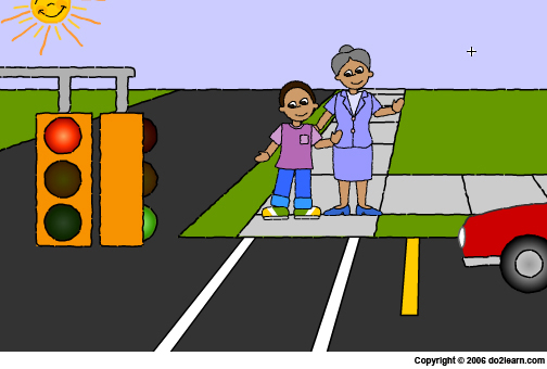 I won't step into the street 'til it's safe for me to go. When there are no moving cars, I can cross but first I know