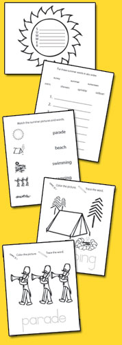 Kids match common summer images with the corresponding words.