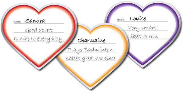 - Write a student's name on each heart.