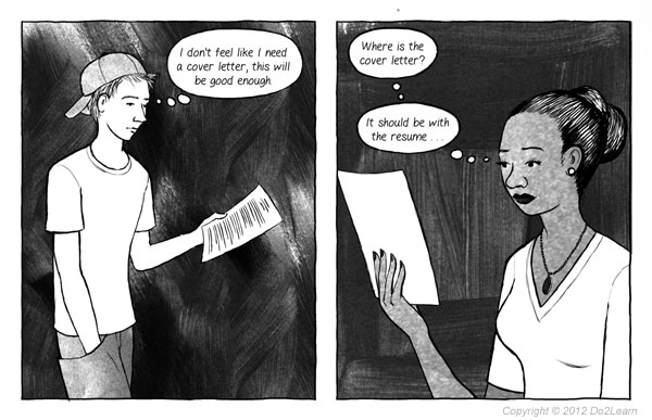 For students needing support in understanding the purpose of a cover letter, a thought story may be useful for illustrating how an employer responds to an applicant’s cover letter.