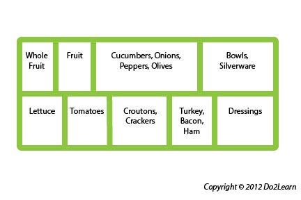 Consider that a map or photograph may prove helpful to the student in arranging items as expected. For example, a map of the layout of the salad bar may prove useful in helping the student prepare the bar: