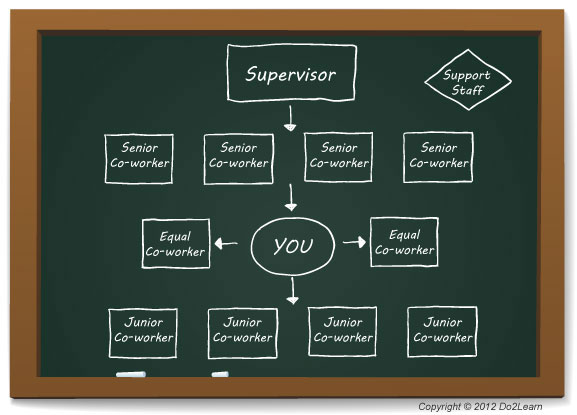 It may benefit some students to see where they “fit” in the larger structure of a school or workplace. Consider using words and names of people to fill in the organizer; some students may benefit from images (e.g. photos of the student, supervisor, co-workers, and generic photos of customers) inserted within each space: