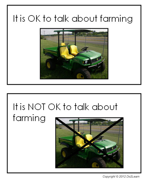 For some students, it would be appropriate to use a simple reminder cue with words and/or pictures to reiterate the “rules.” Below is just one example of a cue that you can refer to (as opposed to applying verbal prompts that are much more difficult to fade):