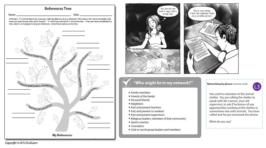 This unit will help students develop the skills they need to craft a strong resume or portfolio, to identify and arrange personal and work references, and to use their social networks to search for jobs. When they find a job that interests them, they will then feel confident that they are ready to apply. Taking time to improve the organizational and social skills necessary at these early stages in the job search process will ensure a lower-stress search with greater chances of success.