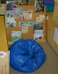 A quiet spot is made for reading with bookcases and the reading rack forming a separate area.