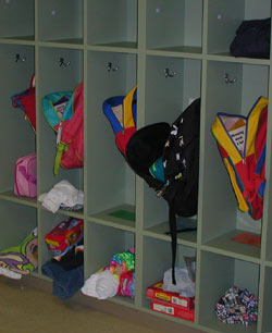 Each child has her own space to store her book bag, lunchbox, and extra clothes. The cubby is labeled with her name and photograph.