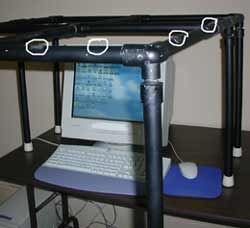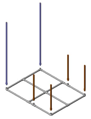 Using Velcro glue, attach each Velcro piece, facing up, to the PVC frame