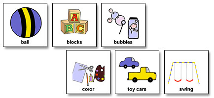 Display pictures of activities in a play area. These can be displayed on a board, a strip or even in a notebook. Using the above explanation, help the person build his own activity schedule.