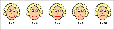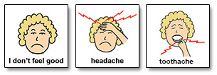 Another useful tool is our feelings scale. Have someone point to the face that best explains how they feel. Useful when determining if a person is sick or hurt.
